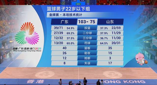 留给山东队的时间只有10分钟了。然而,一切都是枉然,广东队把领先扩大到20+。最终,广东U22男篮在一度落后19分的局面下,愣是上演了大逆转,以103-75大胜山东队,斩获冠军。