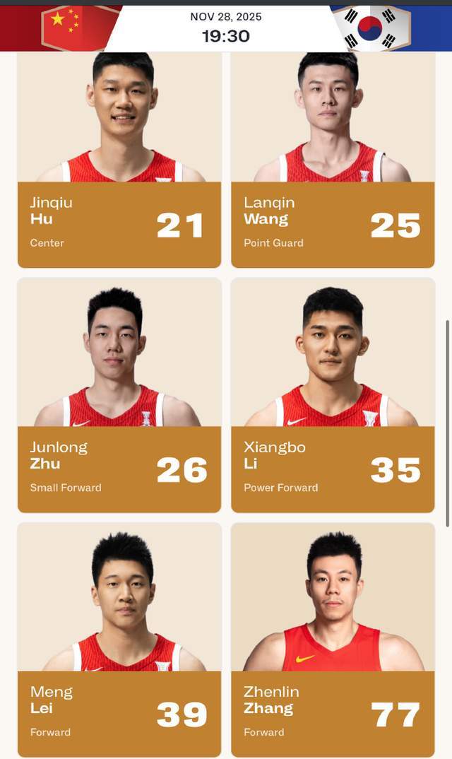 中国男篮vs韩国男篮大名单:张镇麟、曾凡博入选,赵睿不在列