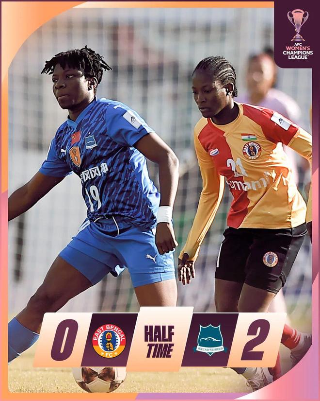 半场战罢,武汉车谷江大女足2比0领先东孟加拉女足。