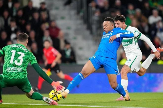 比赛正式开打后,主场作战的埃尔切丝毫不惧银河战舰,双方也拉开架势在场上对攻,第4分钟罗德里戈右路带球内切后打门,可惜没有压住皮球直接出了底线,7分钟后,姆巴佩大禁区线上迎球怒射,皮球同样没有能够命中目标,第17分钟卡雷拉斯后场被抢断,埃尔切顺势形成反击,关键时刻库尔图瓦扑出了对手的打门,力保球门不失。