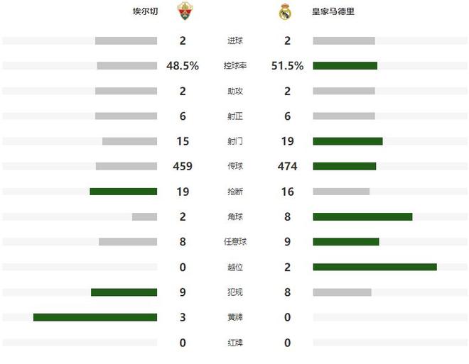 阿隆索也很快做出换人调整,派上了维尼修斯和巴尔韦德,第72分钟皇马前场抢断,可惜维尼修斯大禁区右侧的打门被封堵,错失扳平比分的绝佳机会,不过6分钟之后,赫伊森利用角球机会,门前抢射帮助皇马将比分追至1平,第84分钟出自皇马青训的阿尔瓦罗反击带球推进到前场后,在大禁区前沿左脚抽射建功,帮助埃尔切2-1再次取得领先。